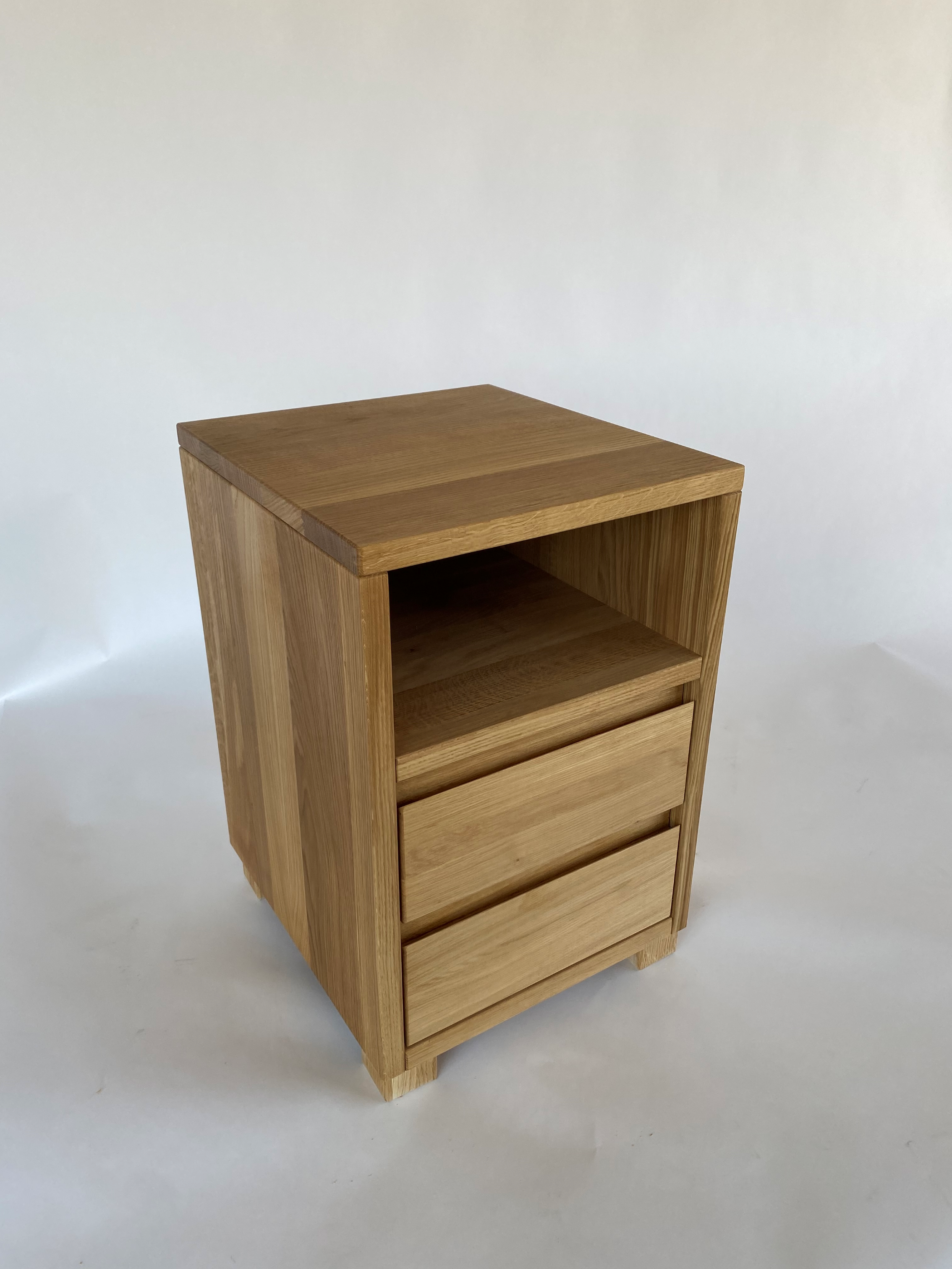 Postel z dubu masivu. Díky členěnému designovému čelu je jednou z našich nejprodávanějších postelí.