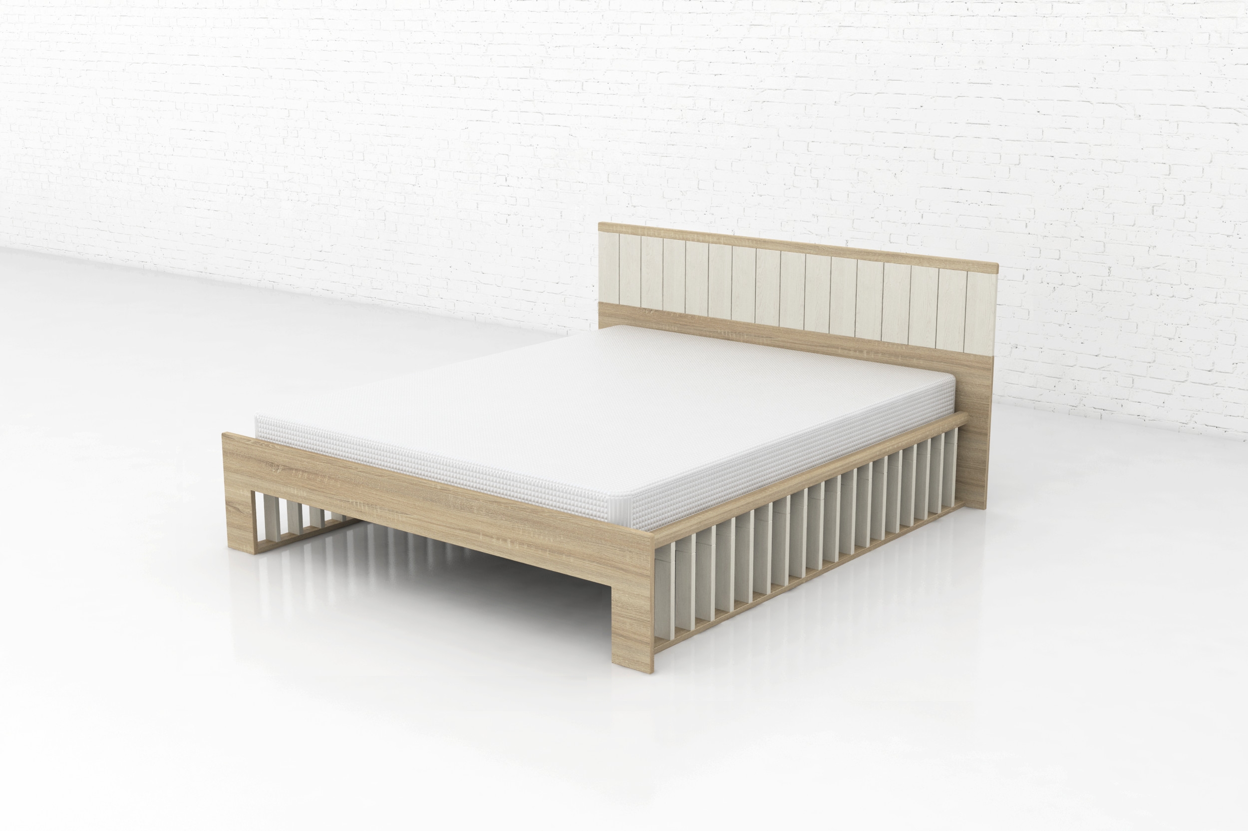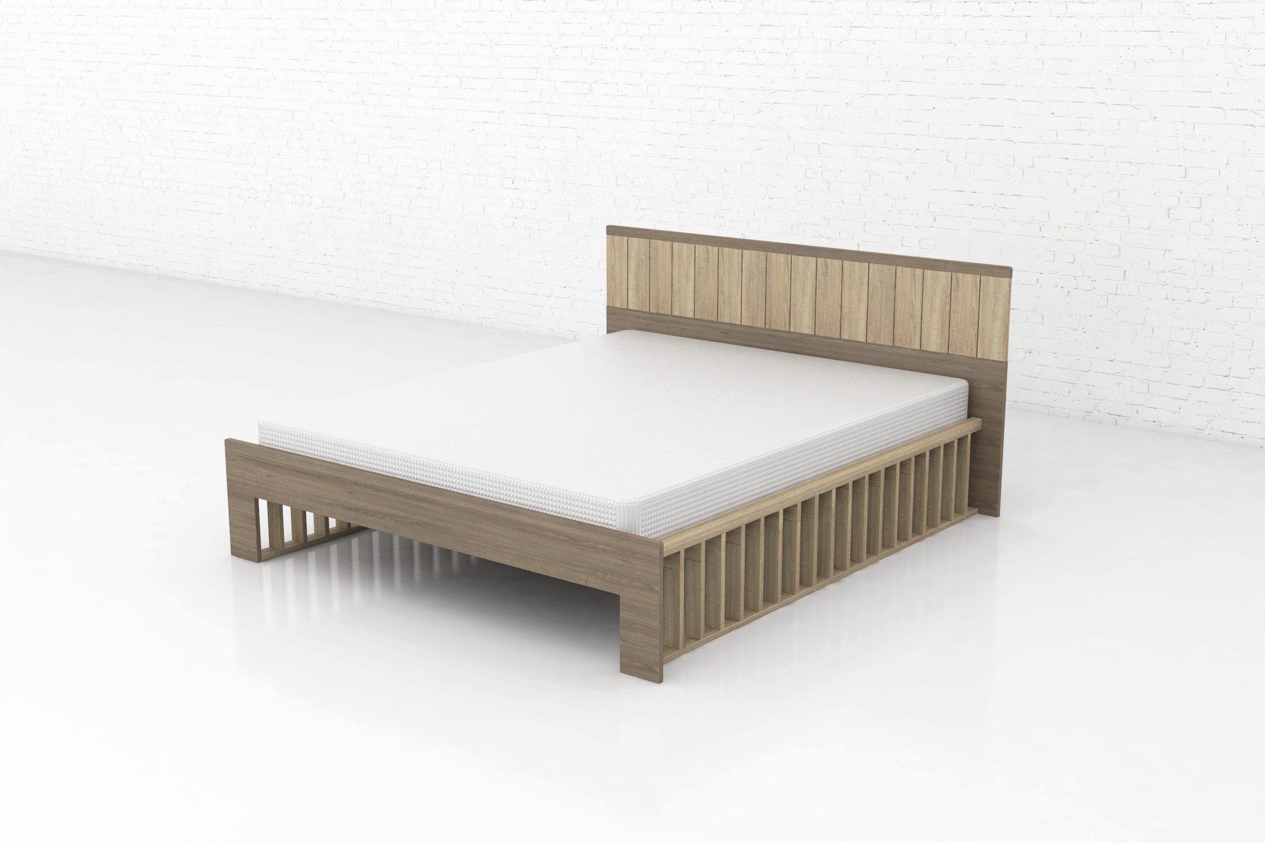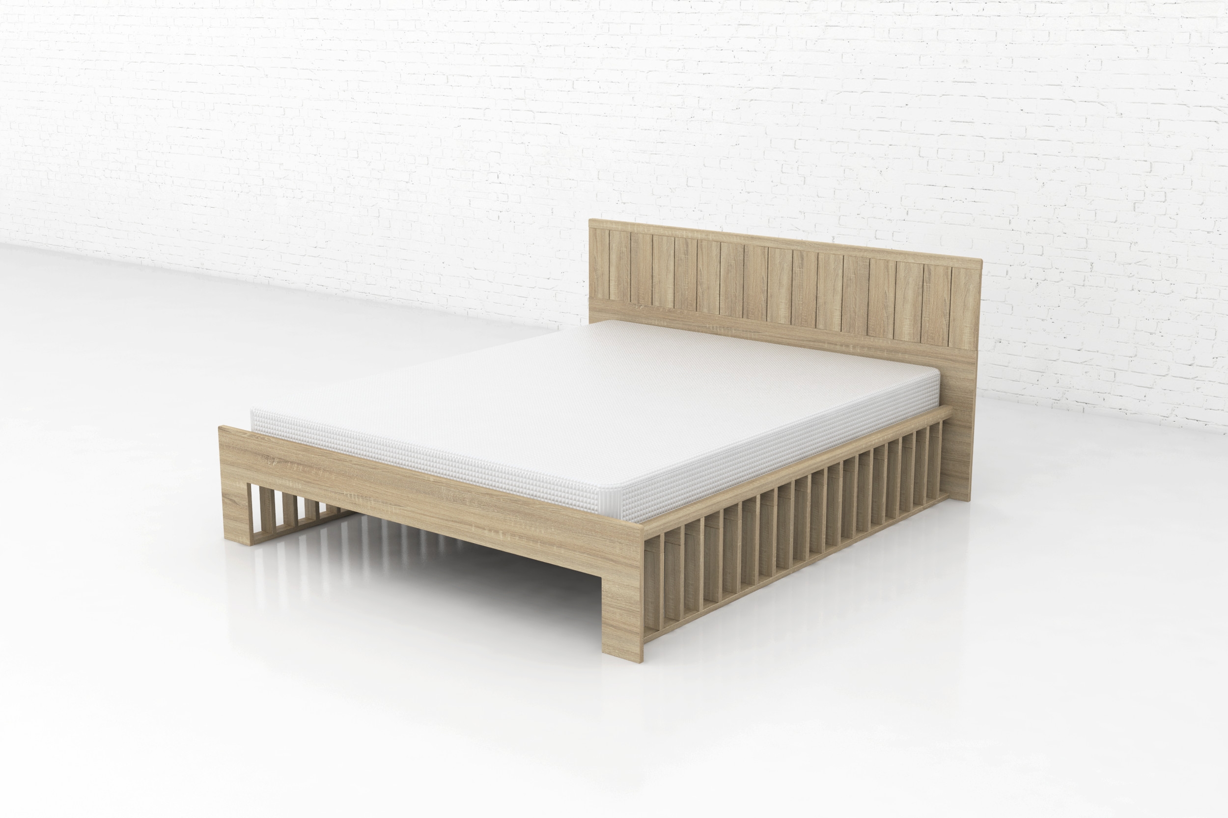 Postel z dubu masivu. Díky členěnému designovému čelu je jednou z našich nejprodávanějších postelí.