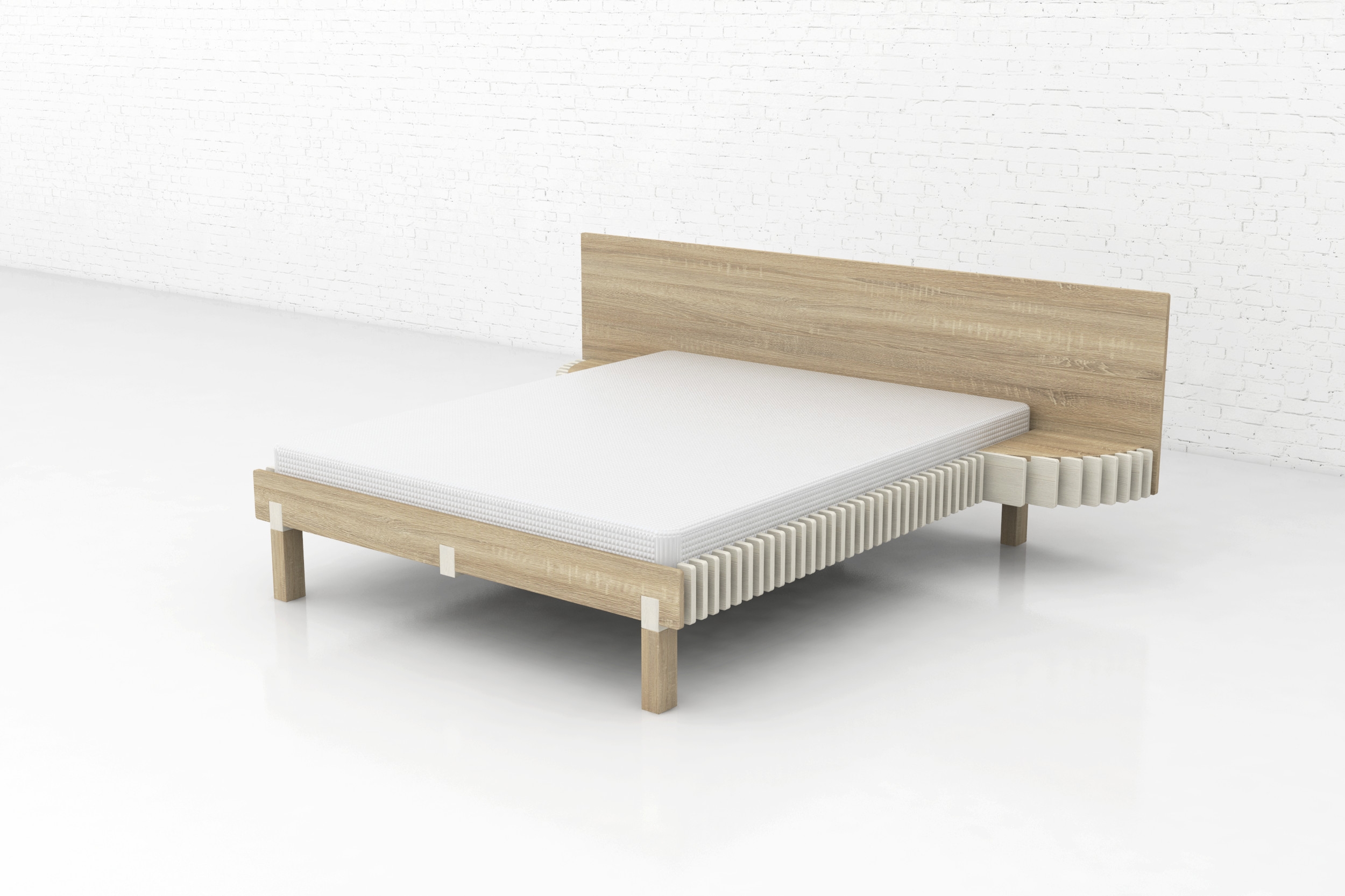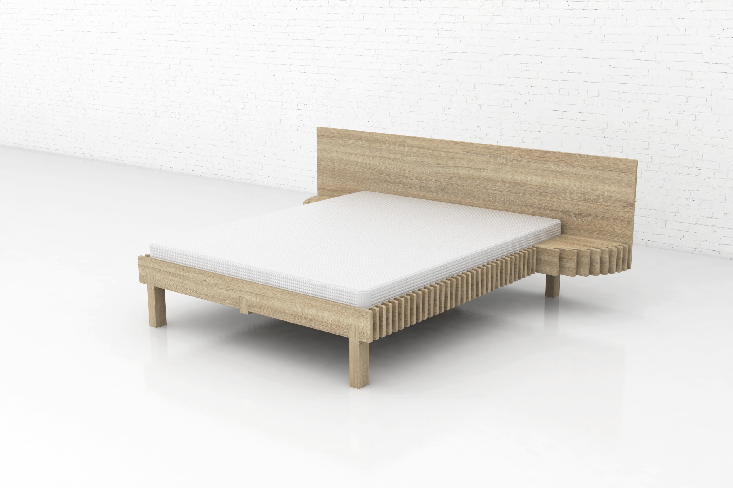 Postel z dubu masivu. Díky členěnému designovému čelu je jednou z našich nejprodávanějších postelí.