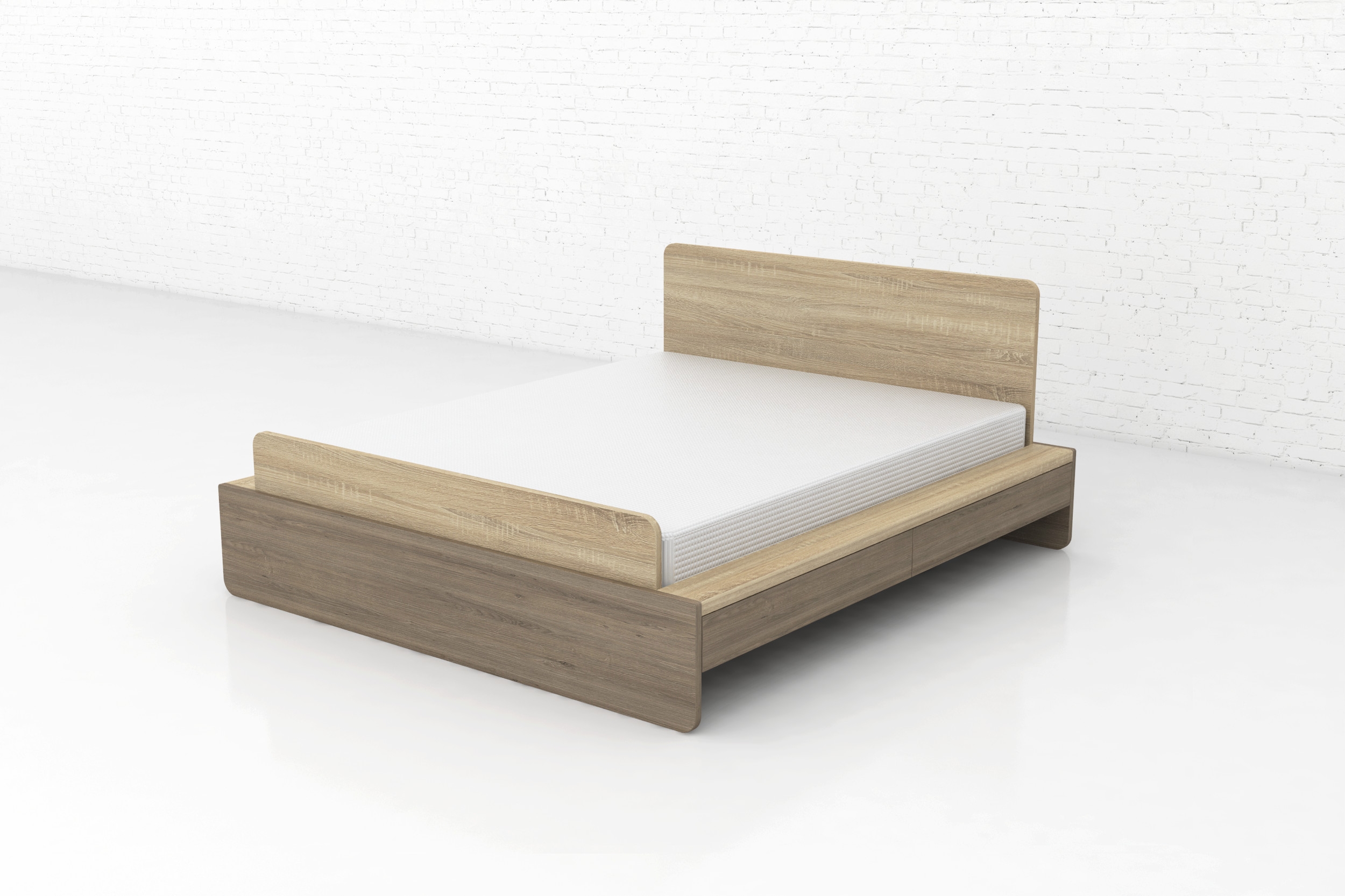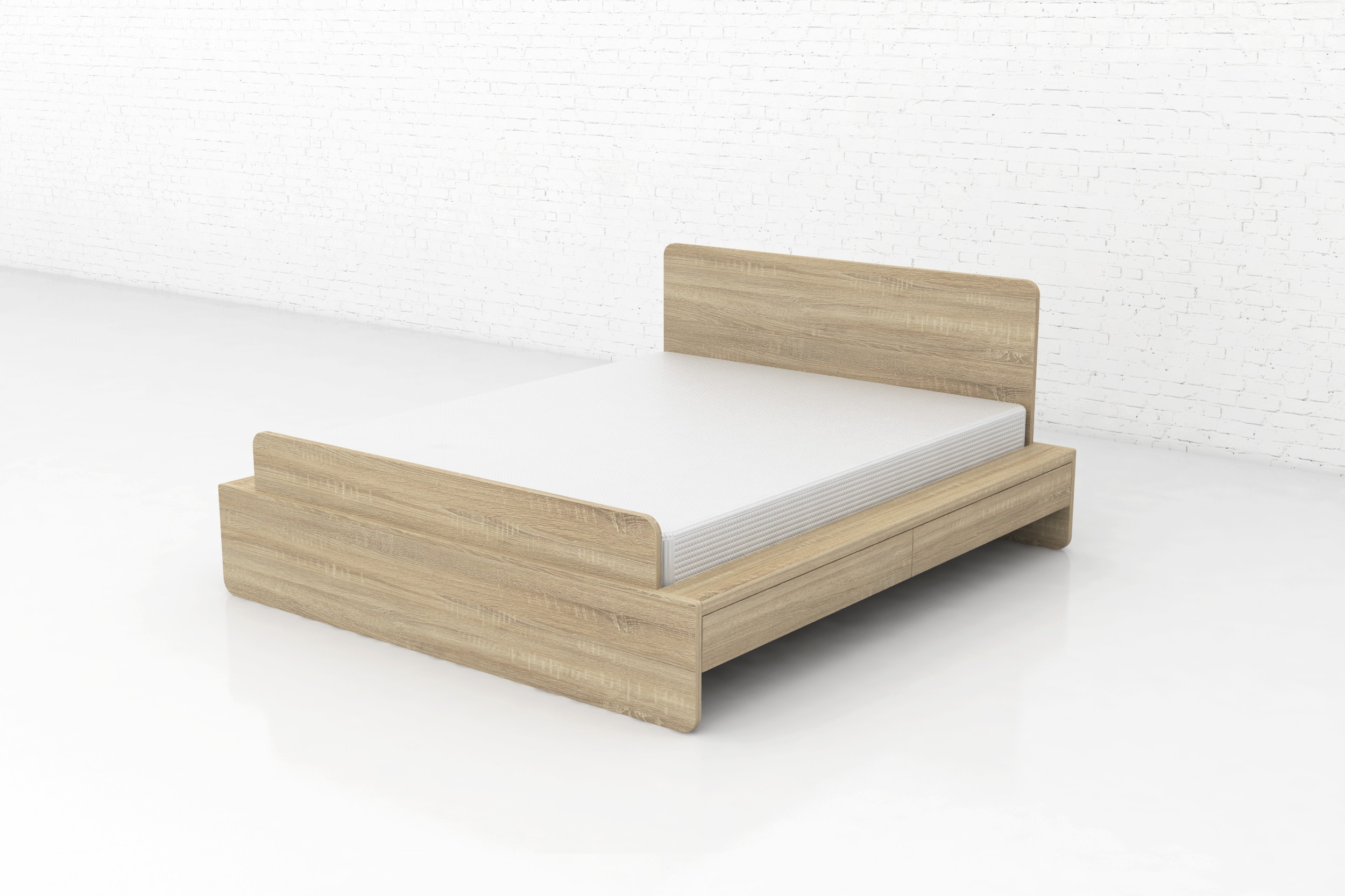 Postel z dubu masivu. Díky členěnému designovému čelu je jednou z našich nejprodávanějších postelí.