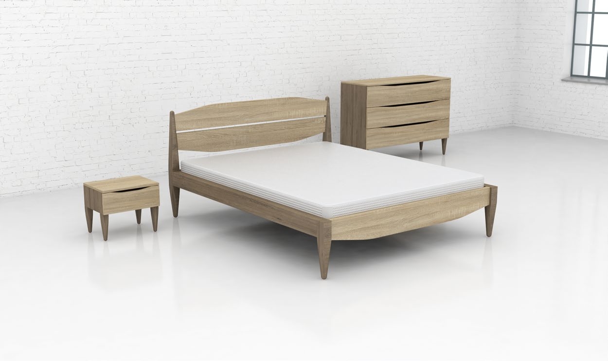 Postel z dubu masivu. Díky členěnému designovému čelu je jednou z našich nejprodávanějších postelí.