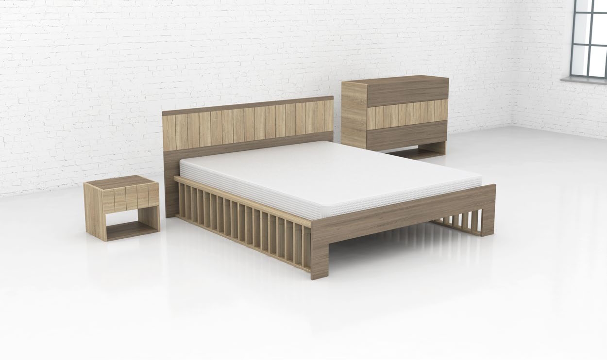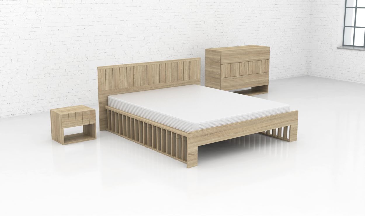 Postel z dubu masivu. Díky členěnému designovému čelu je jednou z našich nejprodávanějších postelí.