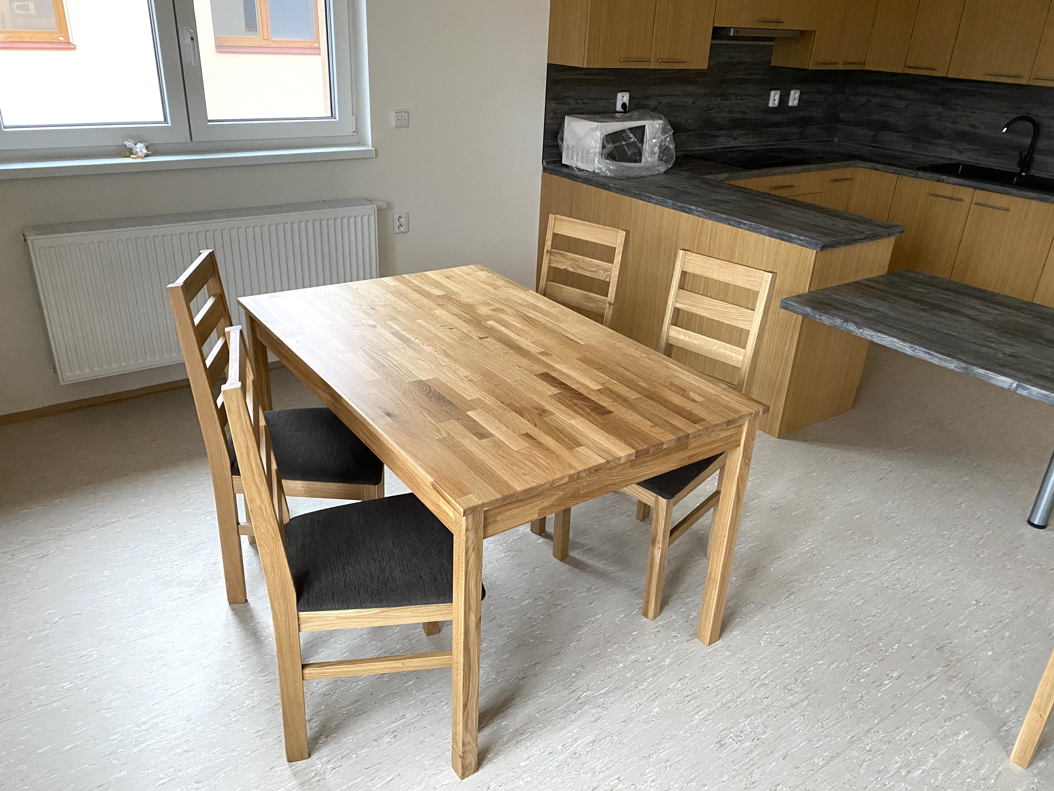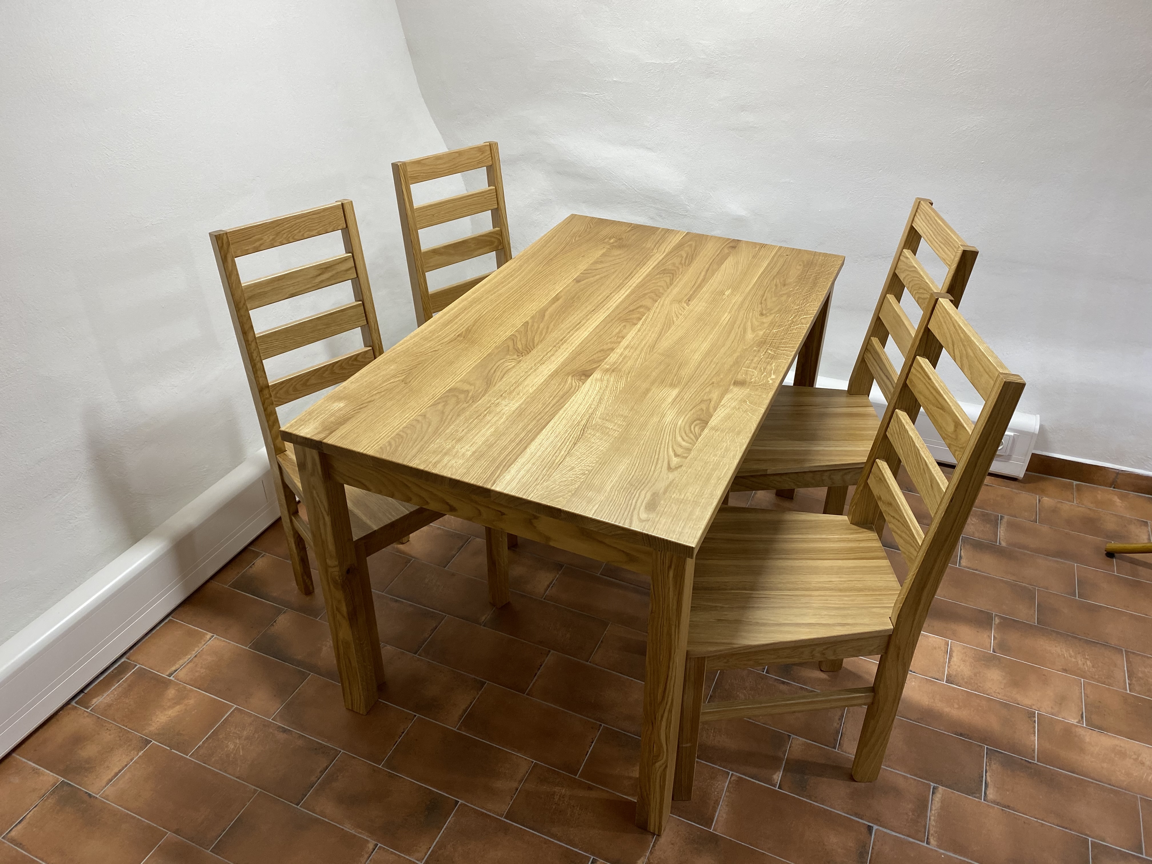 Jídelní stůl Ligo v provedení: podnože – masiv dub - rozměr 4.5x4x5cm deska – masiv dub 20 mm Možné také v provedení buk.