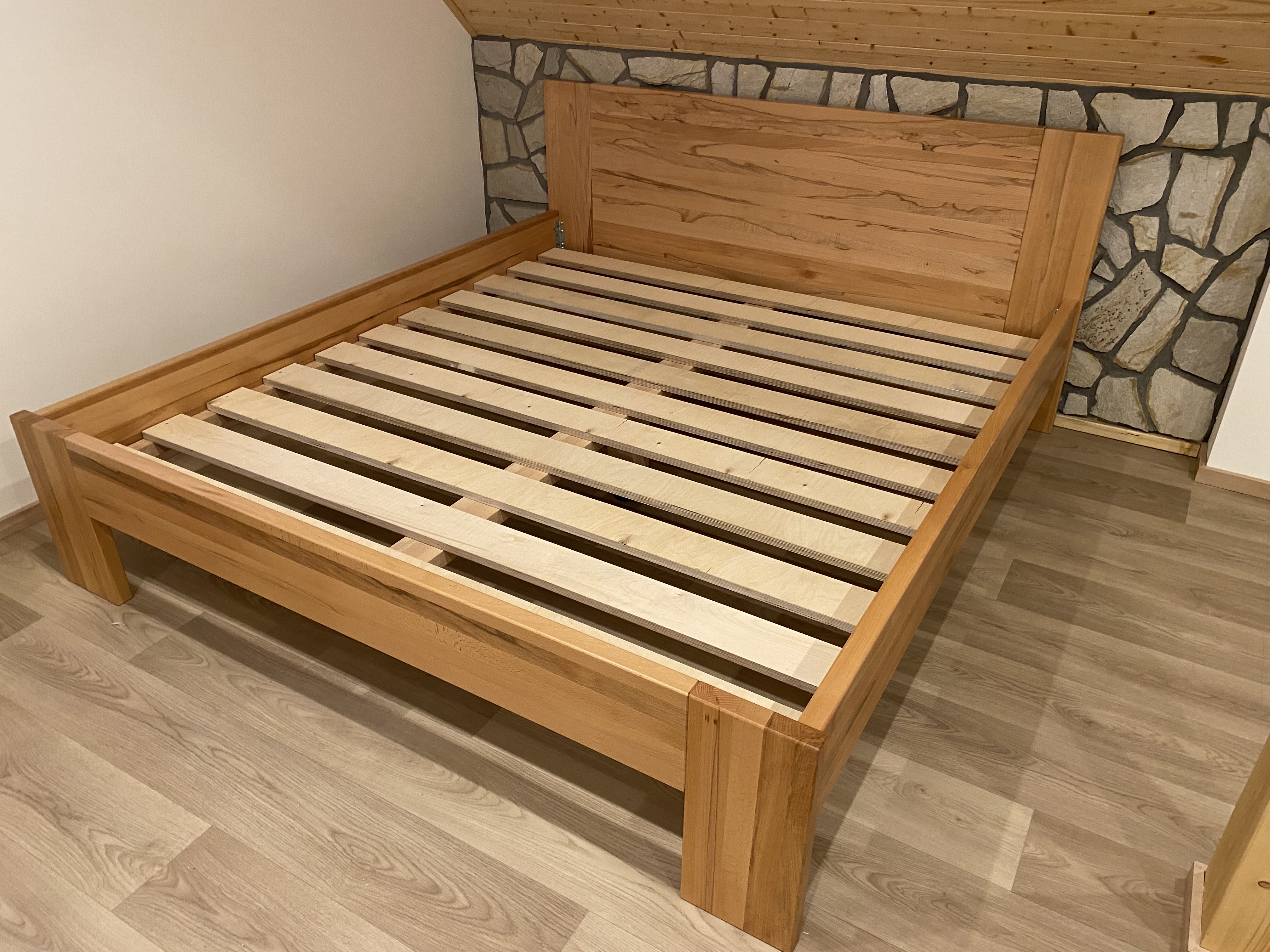 Popis: Masivní buková postel Rustik, mořená do odstínu jako na vzorové fotografii. Jedinečný design.