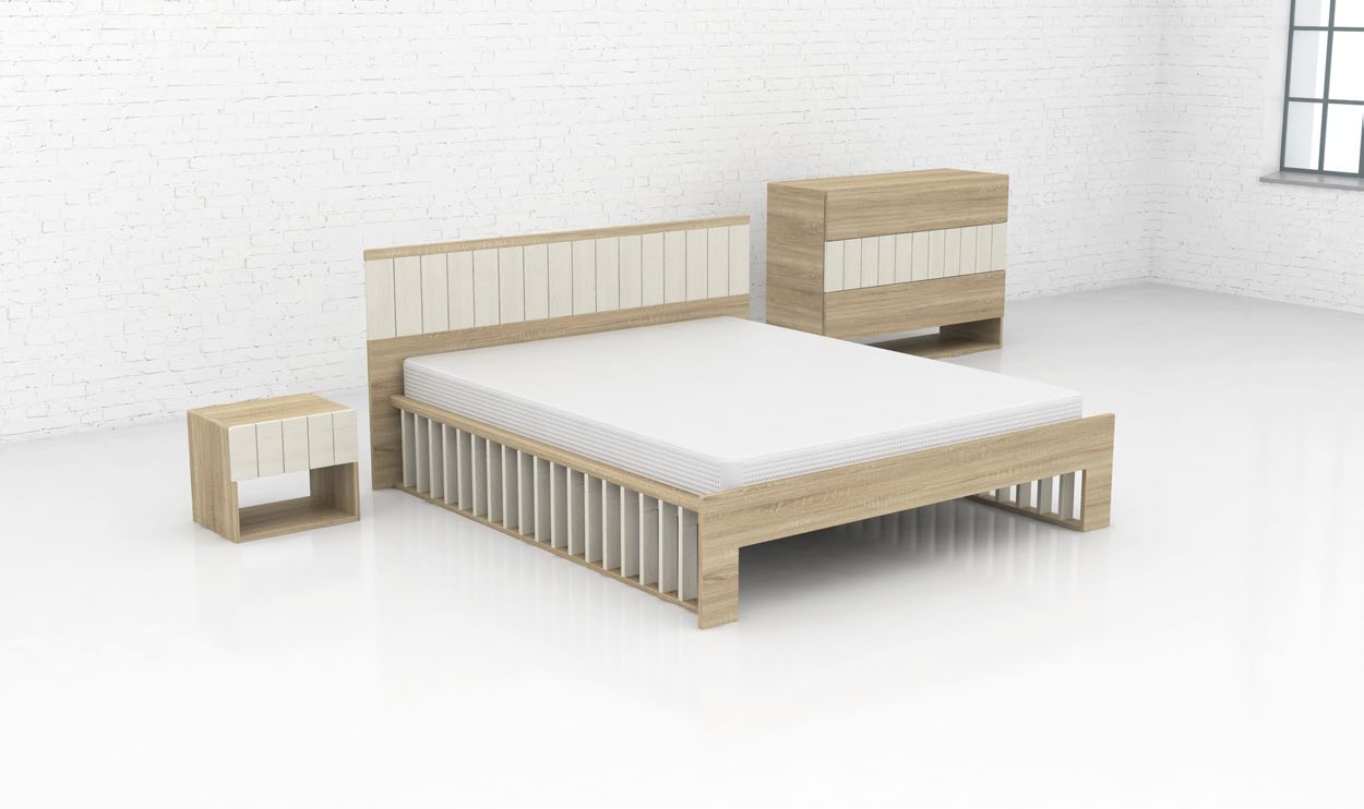 Postel z dubu masivu. Díky členěnému designovému čelu je jednou z našich nejprodávanějších postelí.
