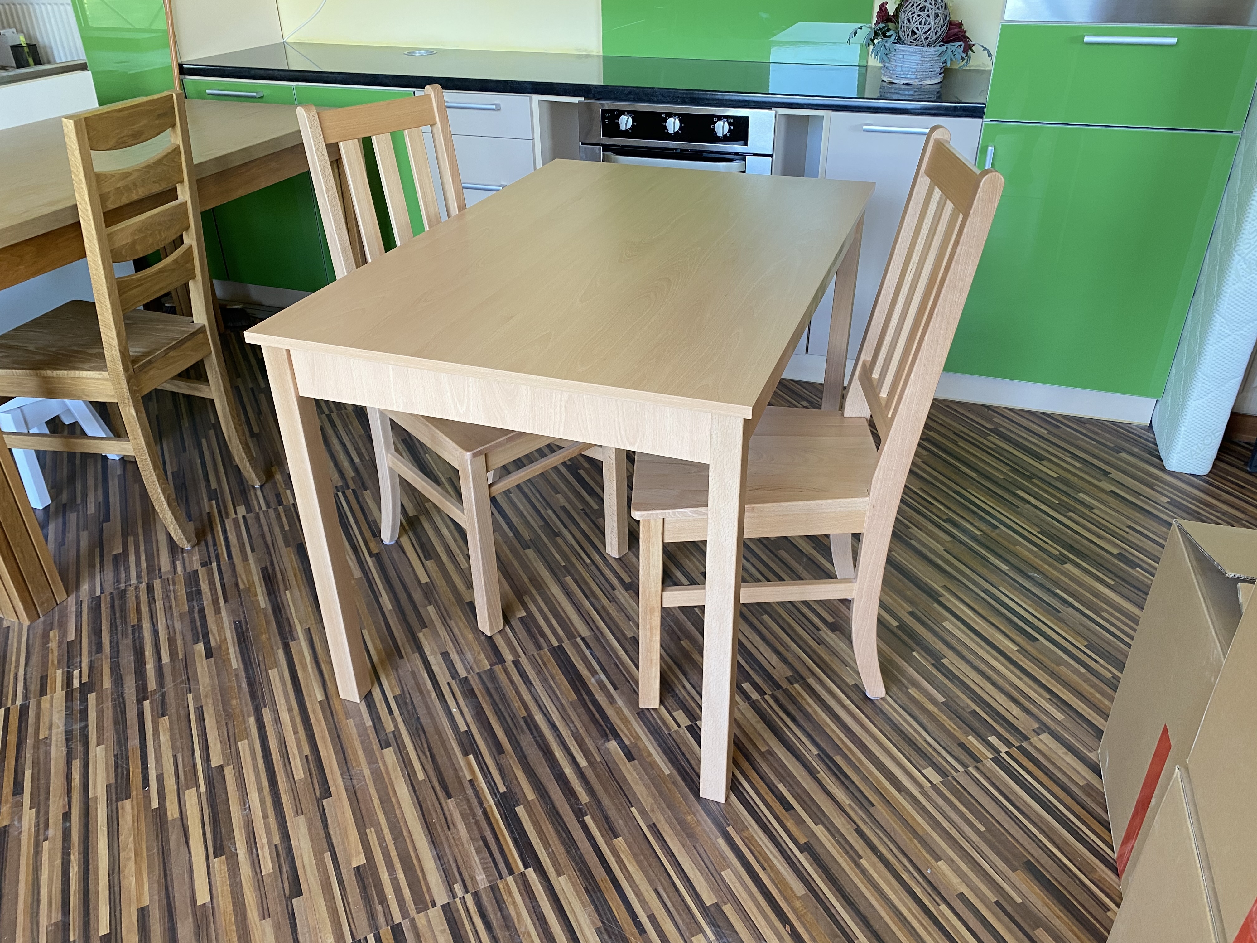Jídelní stůl Ligo v provedení: podnože – masiv dub - rozměr 4.5x4x5cm deska – masiv dub 20 mm Možné také v provedení buk.