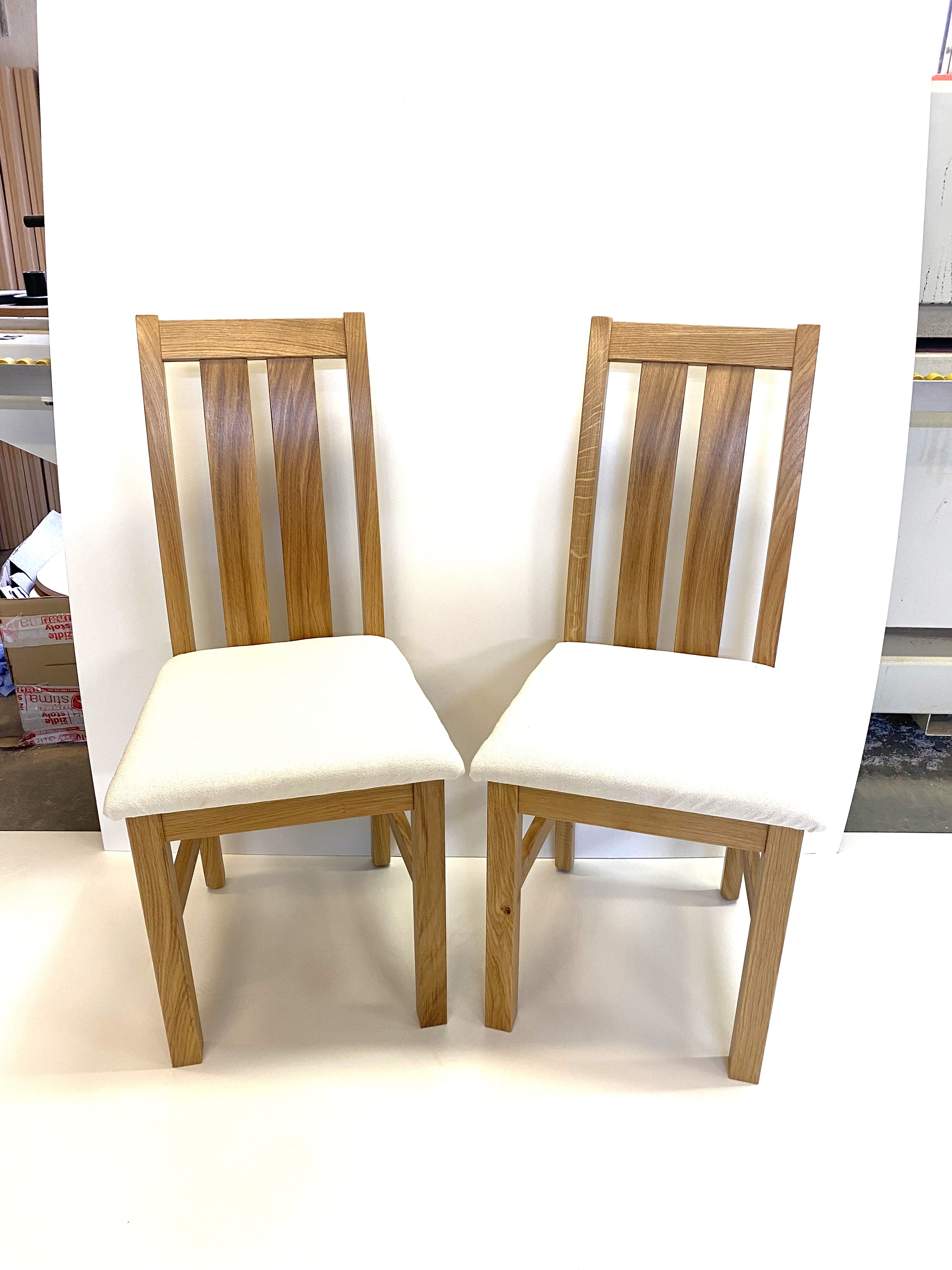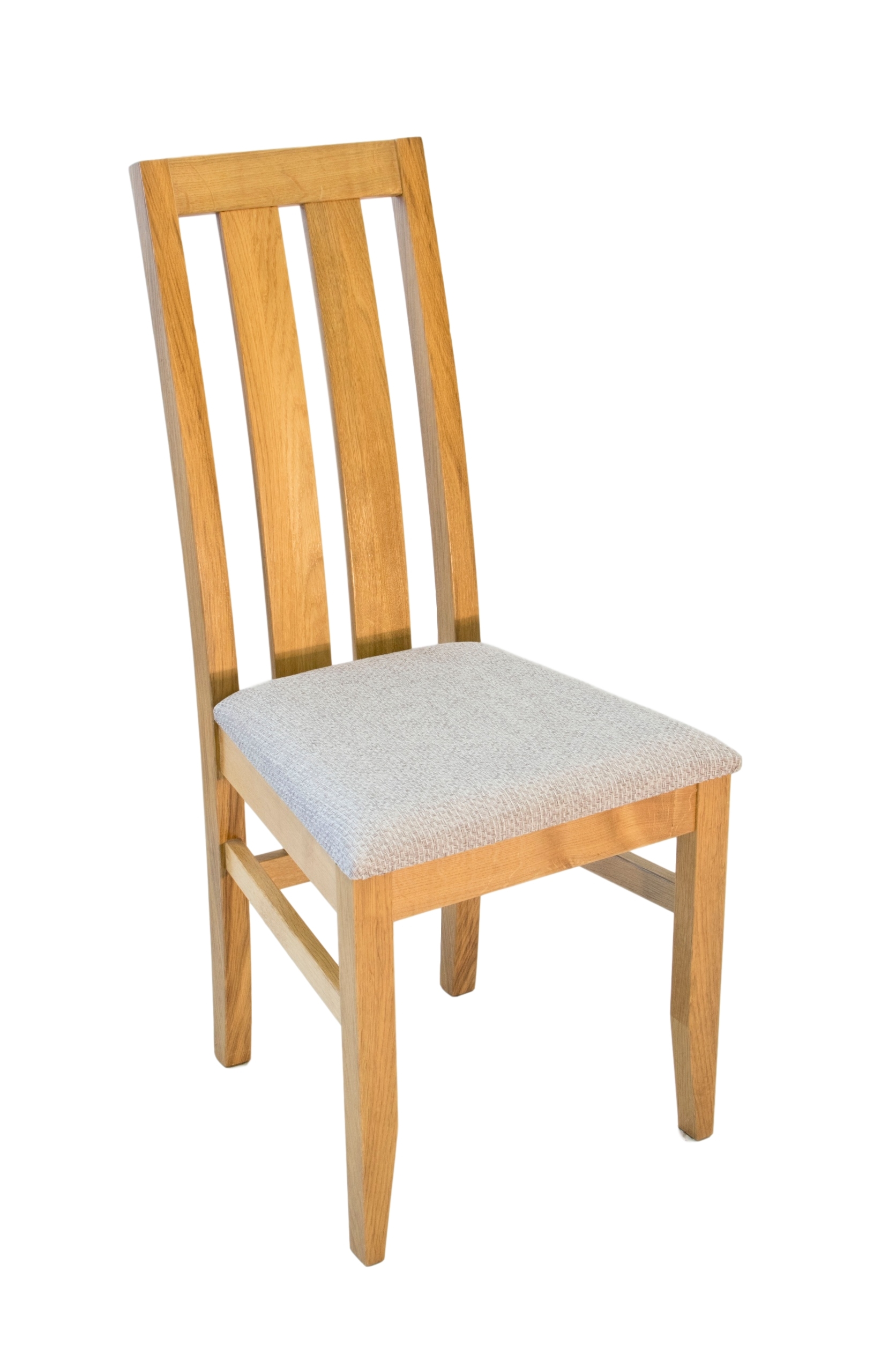 Masivní židle Žaneta ve variantě dub, buk, či ořech. Židli lze také objednávat bez čalouněného sedáku.